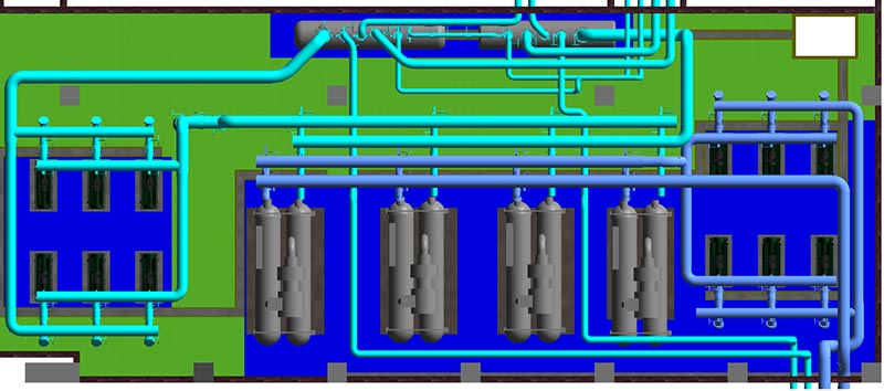 3、管道排布盡量緊湊,保證機(jī)房空間的寬敞