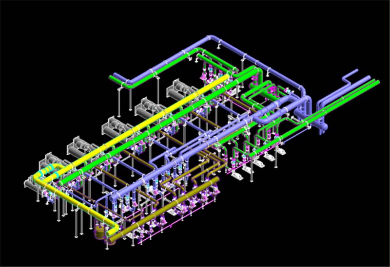 華為電氣園位于深圳華為基地,因大樓的整體改建,建筑面積擴(kuò)增,原有空調(diào)水冷機(jī)房需重新設(shè)計(jì)、制造、安裝。由于原機(jī)房施工空間狹小,機(jī)房容量不到三千冷噸,現(xiàn)有增至5000冷噸,而主機(jī)管道附件設(shè)計(jì)安裝在空調(diào)主機(jī)出水橫管上,橫管占用空間大,且工期緊,給項(xiàng)目的整體配套落地帶來新的挑戰(zhàn)。