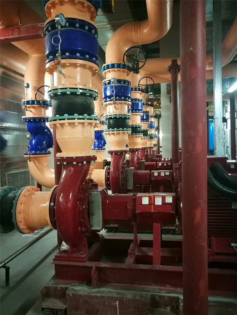 華為電氣園位于深圳華為基地,因大樓的整體改建,建筑面積擴(kuò)增,原有空調(diào)水冷機(jī)房需重新設(shè)計(jì)、制造、安裝。由于原機(jī)房施工空間狹小,機(jī)房容量不到3000冷噸,現(xiàn)增至5000冷噸,而主機(jī)管道附件設(shè)計(jì)安裝在空調(diào)主機(jī)出水橫管上,橫管占用空間大,且改造工期緊,給項(xiàng)目的整體配套落地帶來新的挑戰(zhàn)。