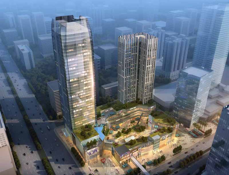 該項(xiàng)目總建筑面積22.4萬(wàn)平方米,包括一期裙樓商業(yè),面積約3.6萬(wàn)平方米;二期主體為兩棟分別高129米的30層及高190米的41層國(guó)際甲級(jí)寫(xiě)字樓,面積約18.8萬(wàn)平方米。