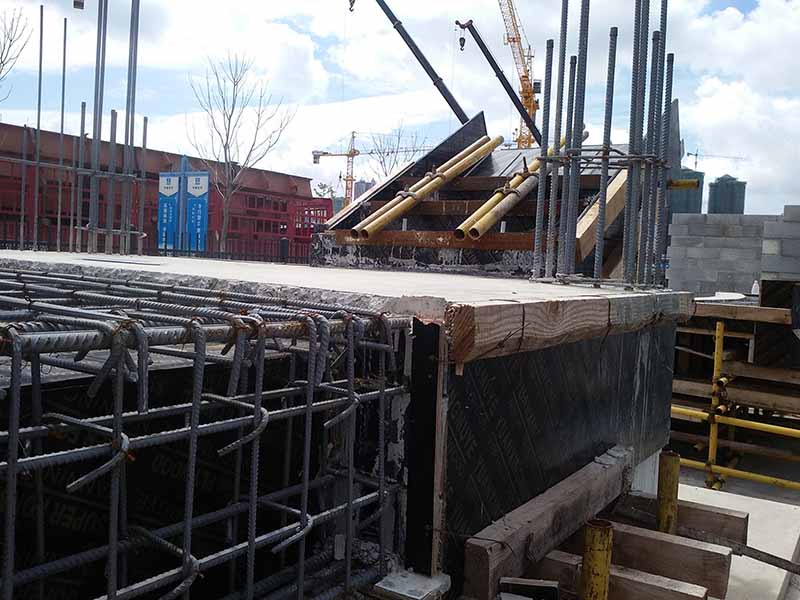廣西文化藝術(shù)中心項(xiàng)目總建筑面積114835平方米,主體建筑層數(shù)為地下1層、局部2層,地上4層、局部7層。該項(xiàng)目鋼結(jié)構(gòu)主要由3個(gè)巨型拱結(jié)構(gòu)(大劇院、音樂(lè)廳、多功能廳)通過(guò)水平設(shè)置的平面交叉桁架體系(云棚)相互連接形成,通過(guò)鉸接支座落在標(biāo)高6.5米的混凝土結(jié)構(gòu)上,整體鋼結(jié)構(gòu)體系相對(duì)獨(dú)立。3個(gè)單體鋼屋蓋造型呈現(xiàn)出群山起伏的意境,與云狀屋蓋共同勾畫(huà)出廣西地區(qū)特有的喀斯特地貌。