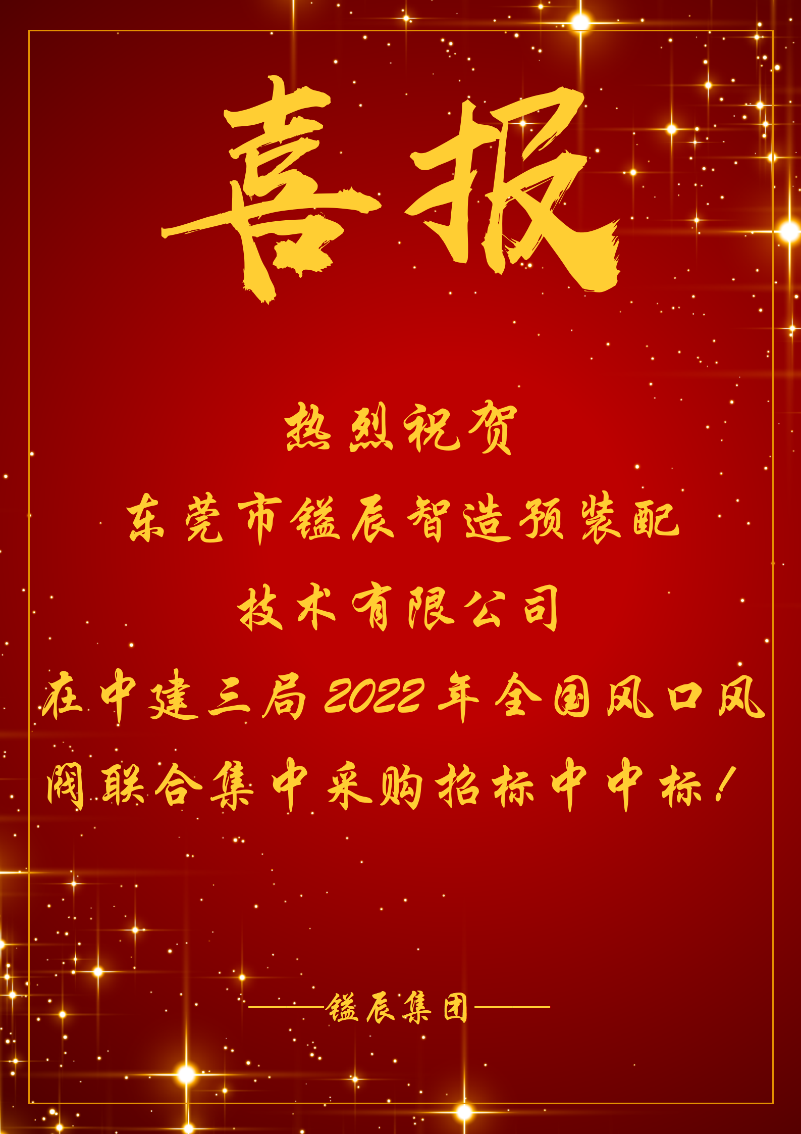 熱烈祝賀東莞市鎰辰智造預(yù)裝配技術(shù)有限公司在中建三局2022年風(fēng)口風(fēng)閥聯(lián)合集中采購(gòu)招標(biāo)中中標(biāo)!